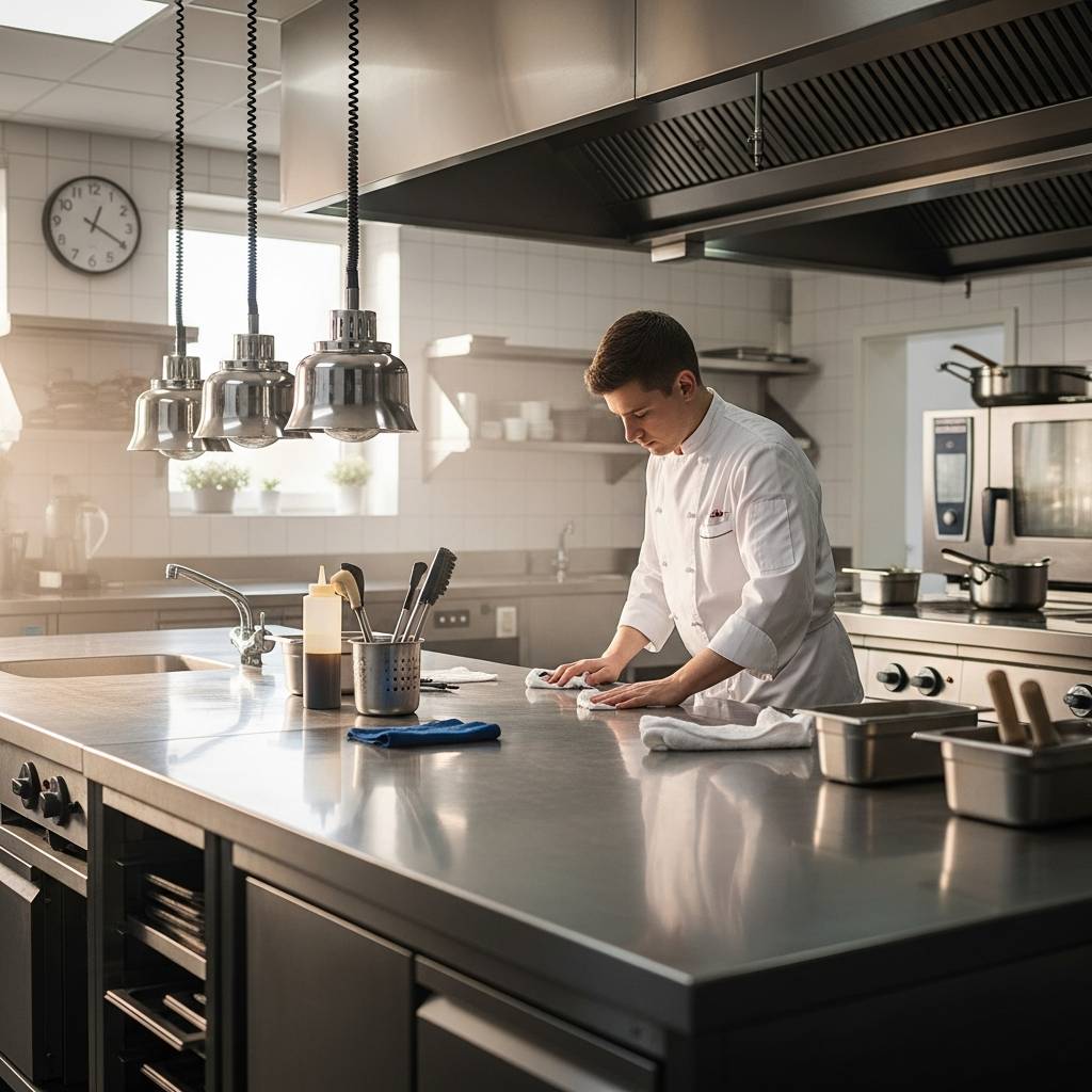 一流シェフが実践する厨房清掃ルーティーン:朝15分で完了する魔法のステップ