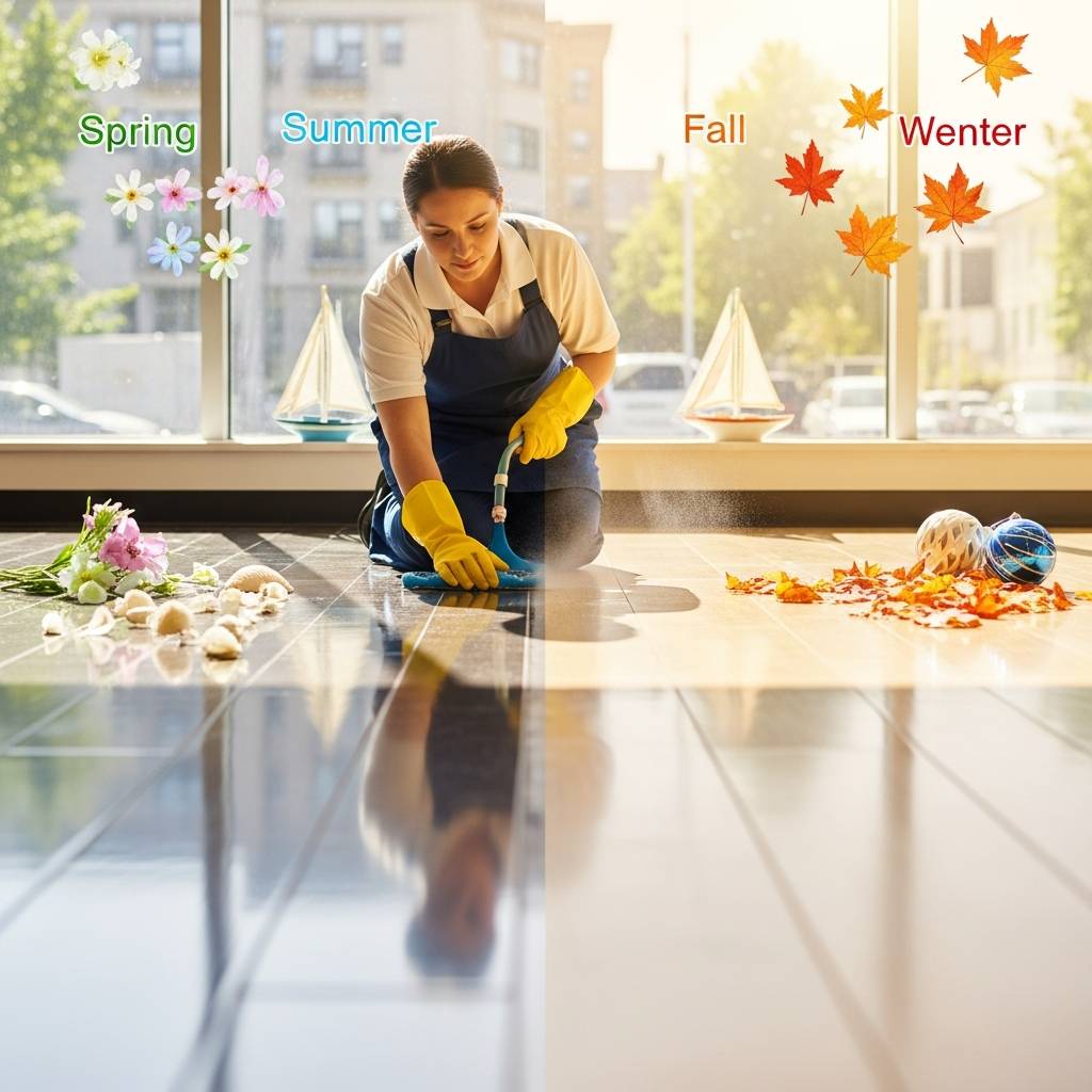 季節によって店舗の床管理方法は大きく変わります。特に夏と冬では、気温や湿度の差が床のコンディションに直接影響するため、それぞれの季節に合わせた対策が不可欠です。プロのクリーニング業者が実践している季節別の床管理テクニックを紹介します。